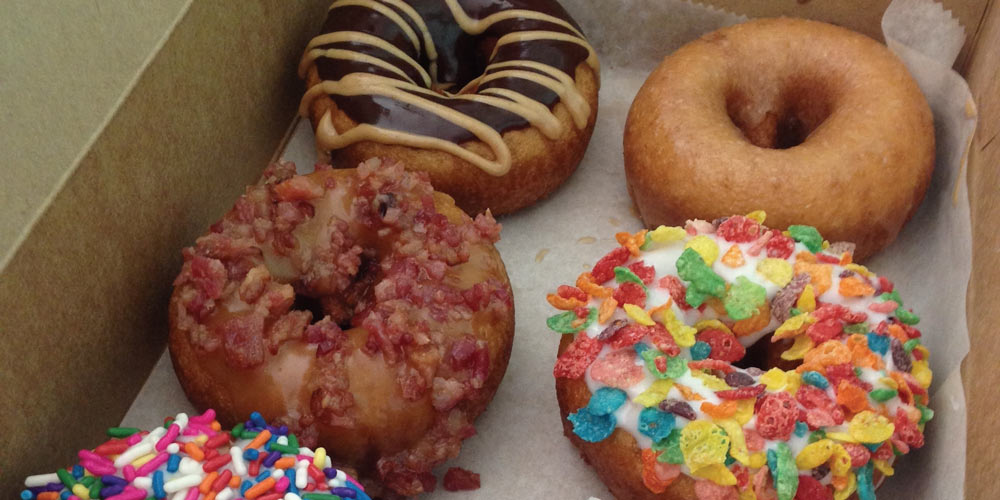 Am Donut Experiment kommt man eigentlich nicht vorbei, er ist ein Muss für Naschkatzen, schließlich sind die runden Lekereien auch die Lieblinge der Amerikaner. Hier ein kleiner Auszug, was die frisch gebackenen Teigringe toppen kann: Caramel, Erdnuss, Kokosnuss, Chocolate Chips oder wer’s deftig mag: Meersalz oder Bacon.